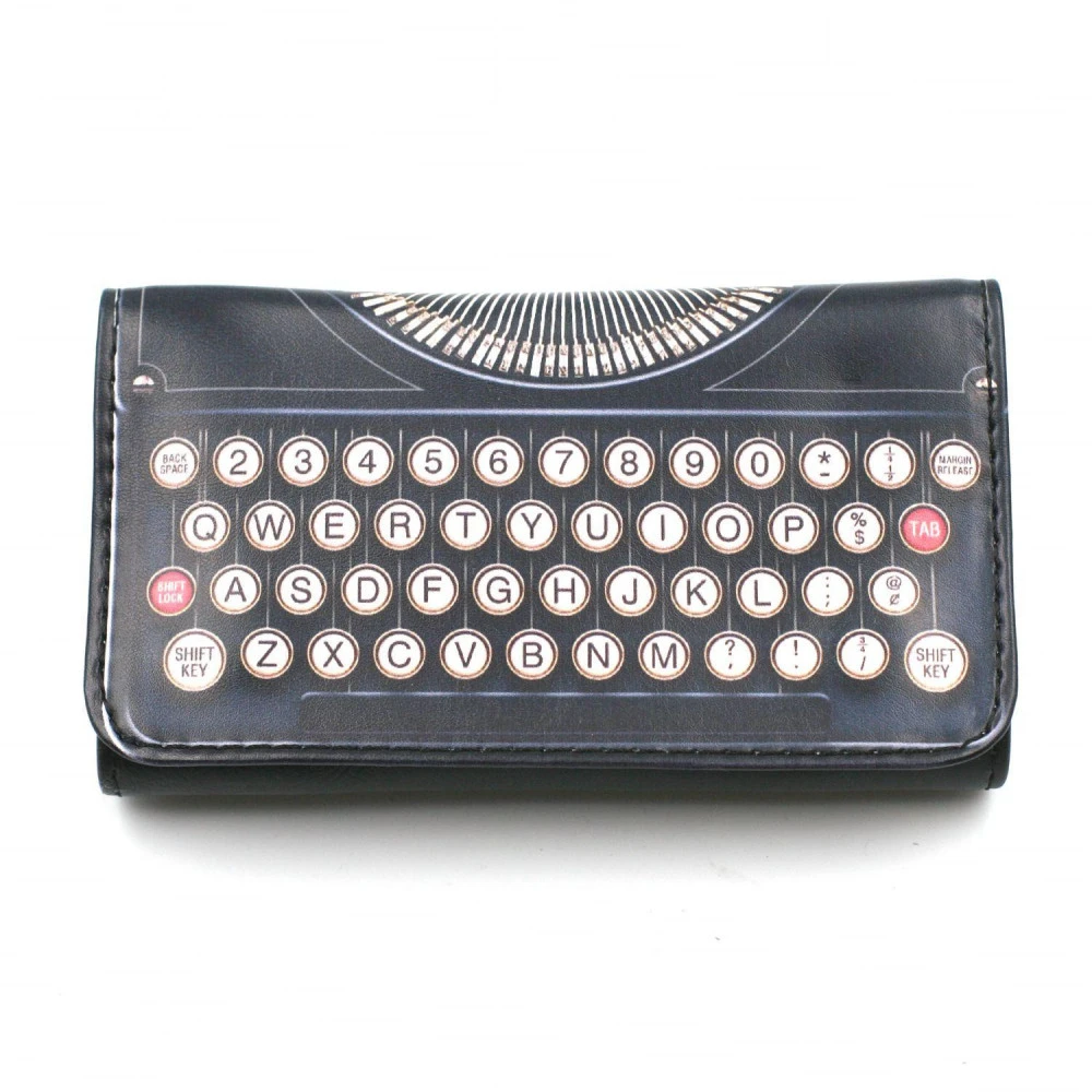 Blague à Tabac avec rangement pour feuille à rouler slim, en similicuir et aux dimensions environ 8 x 13 cm (fermé). Design style machine à écrire vintage, cette blague à tabac aussi belle que pratique vous accompagnera au quotidien