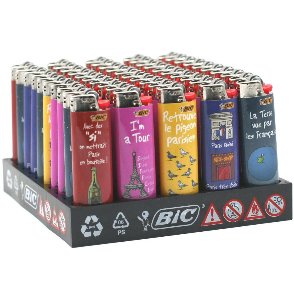 Plaquette de 50 briquets BIC grand format, collection Paris Hihihi avec 5 modèles différents